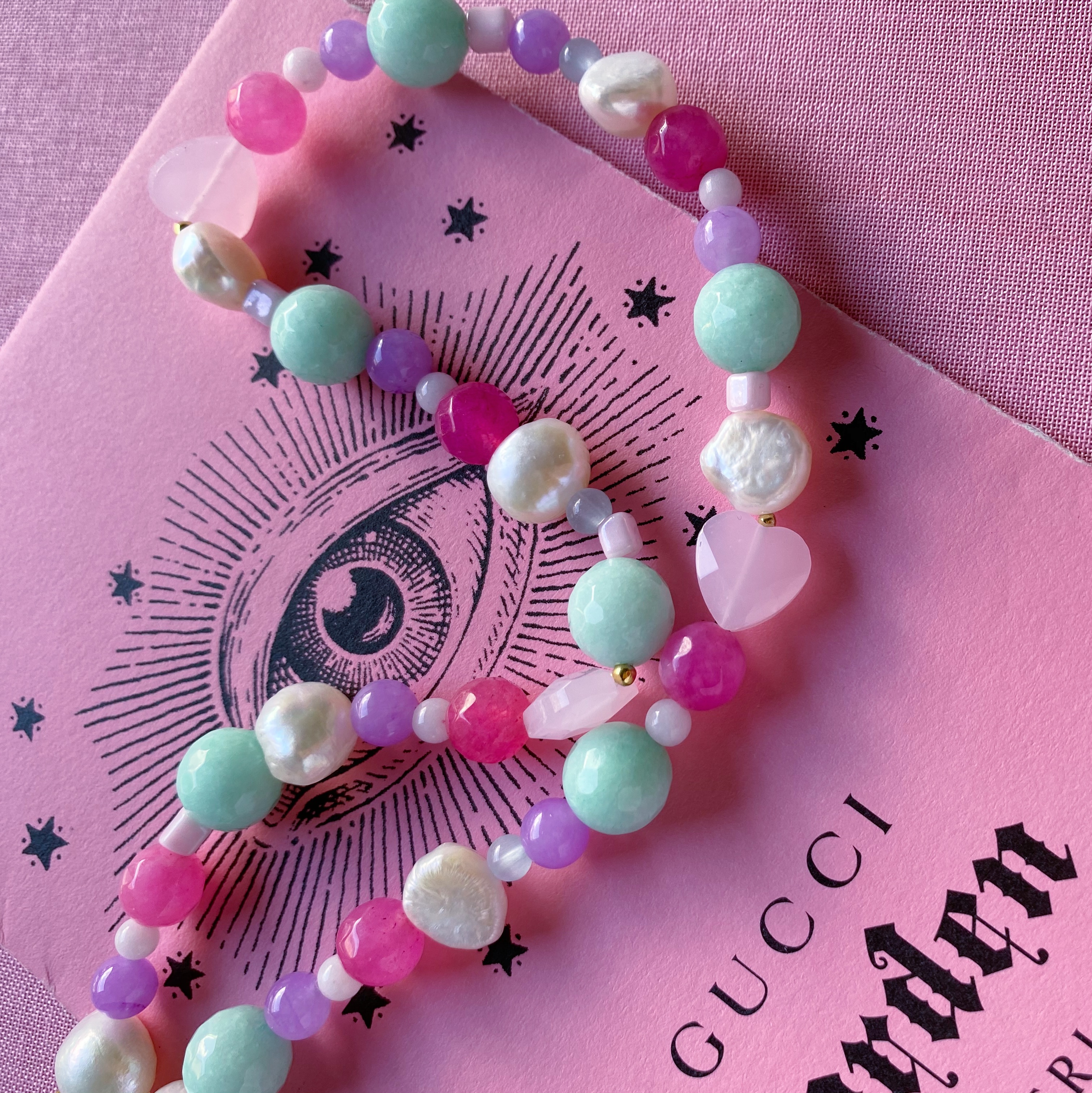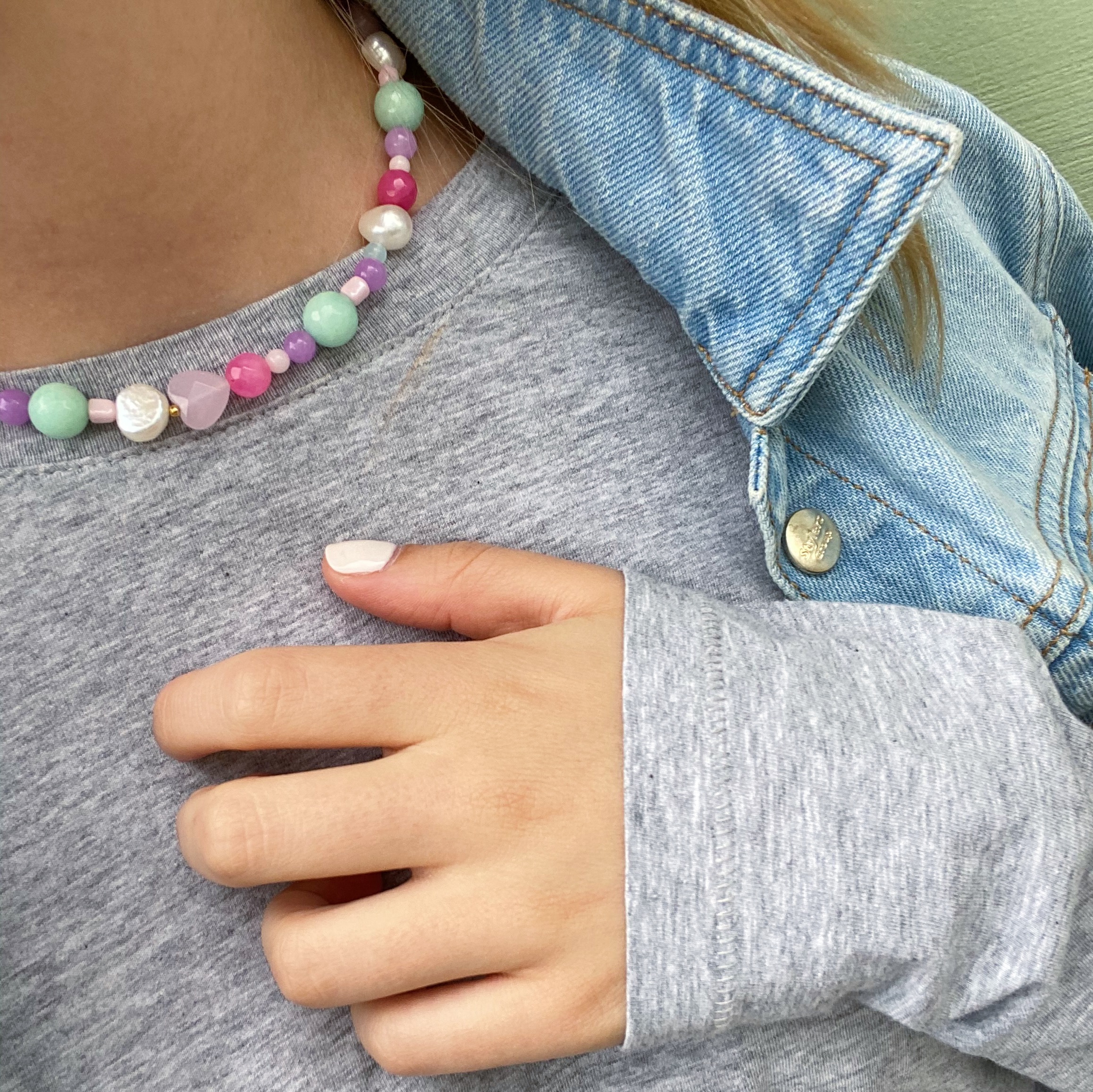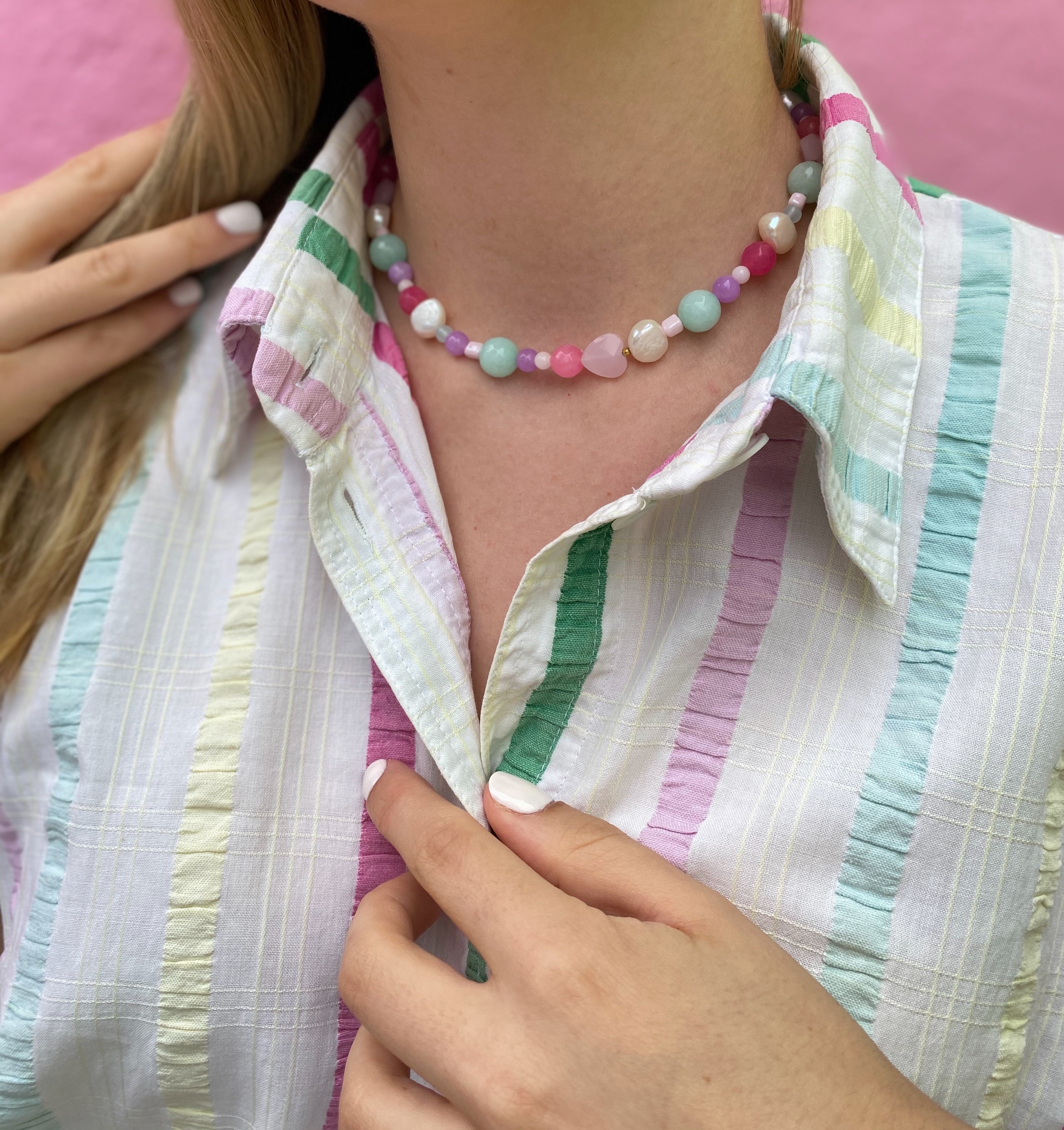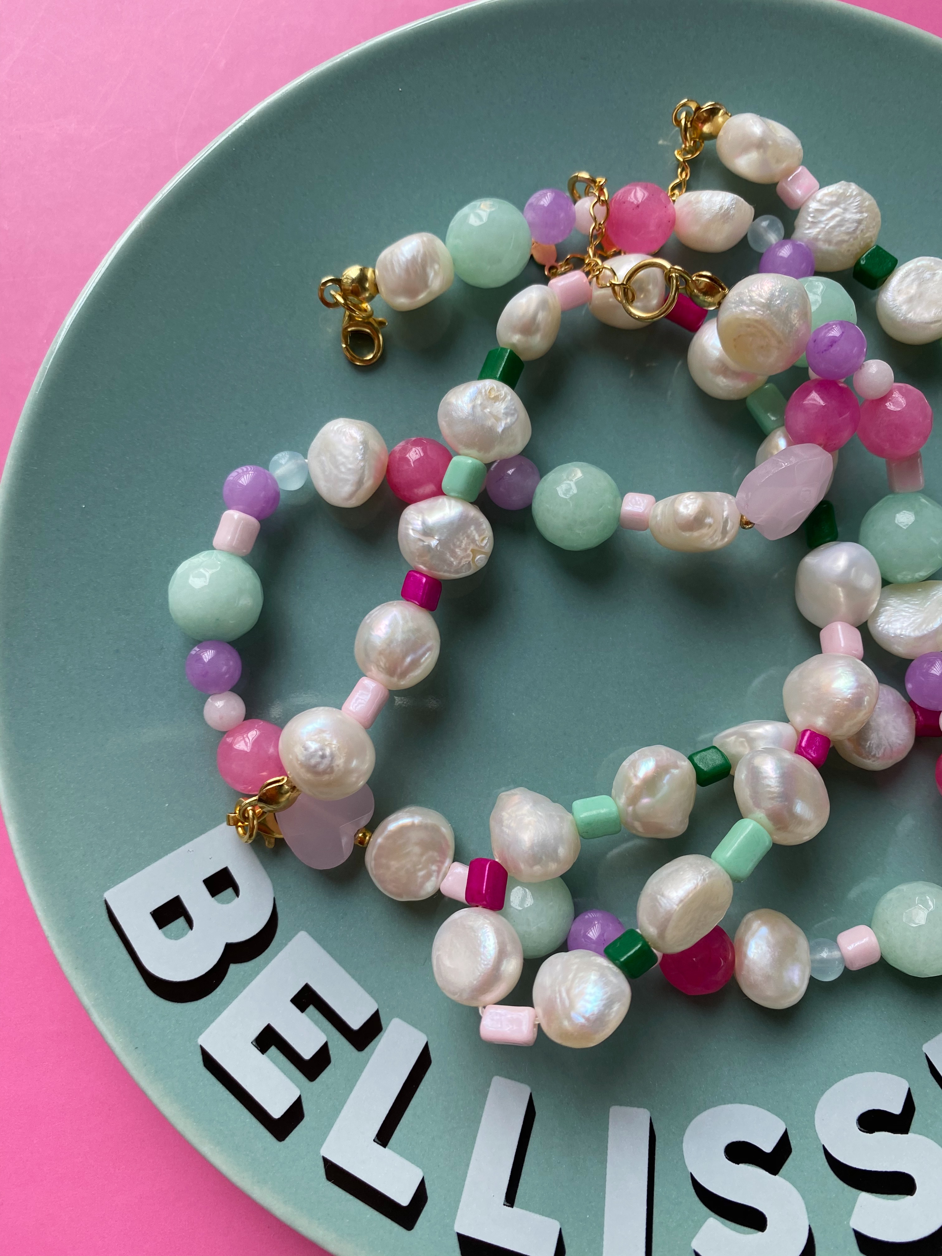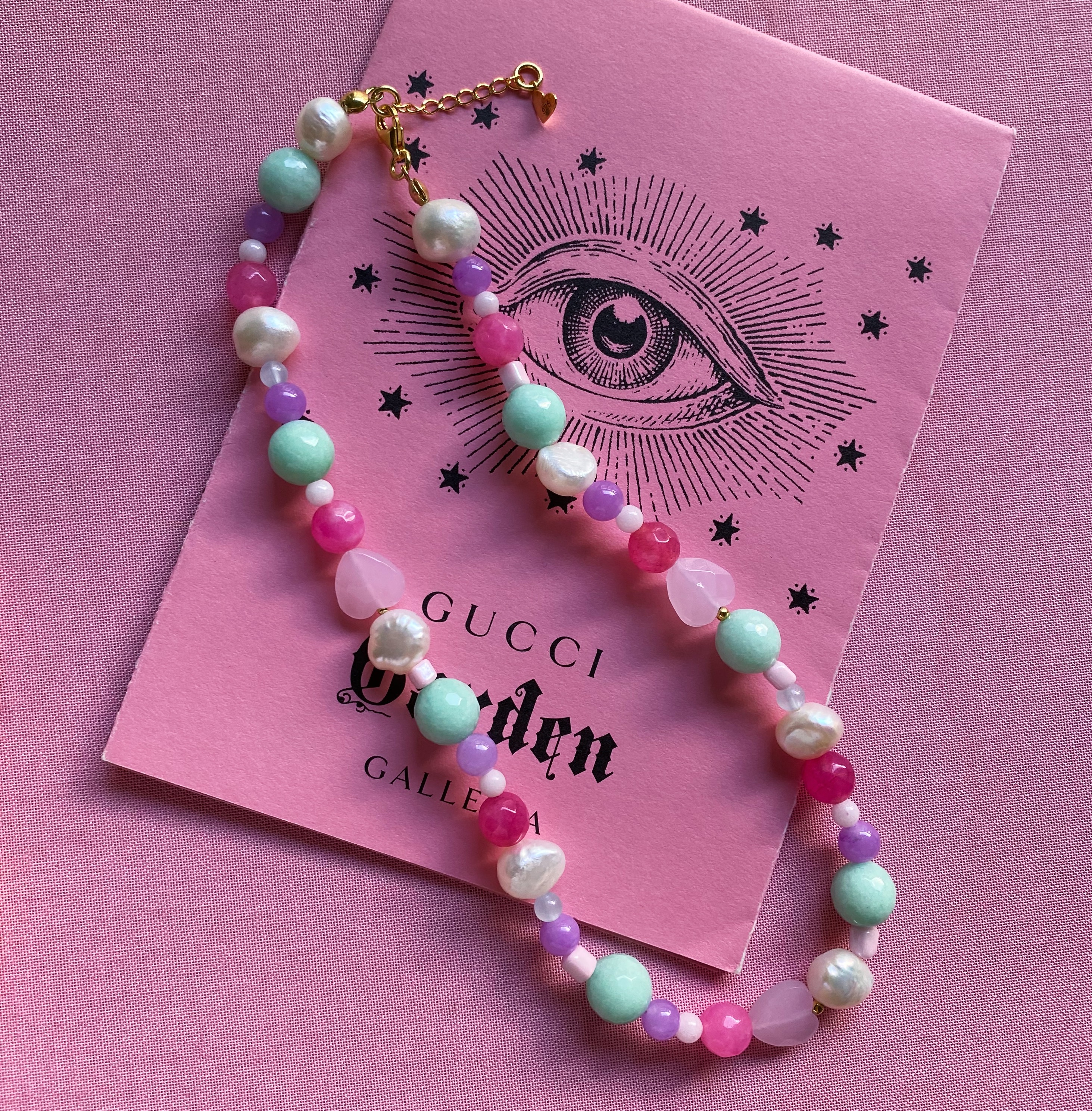 AMORE pozłacany naszyjnik z naturalnymi kamieniami i perłami