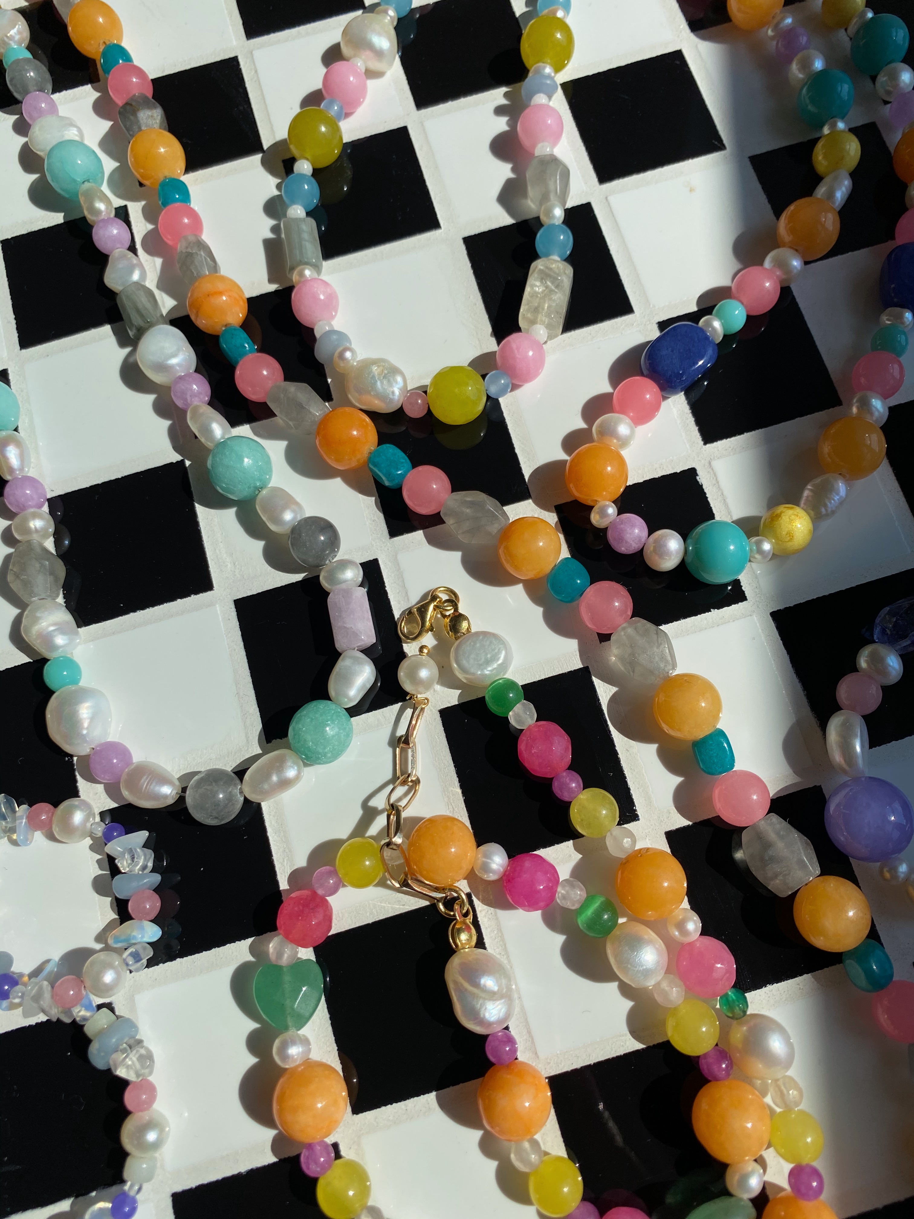 ARANCIA pozłacany naszyjnik z naturalnymi kamieniami i perłami
