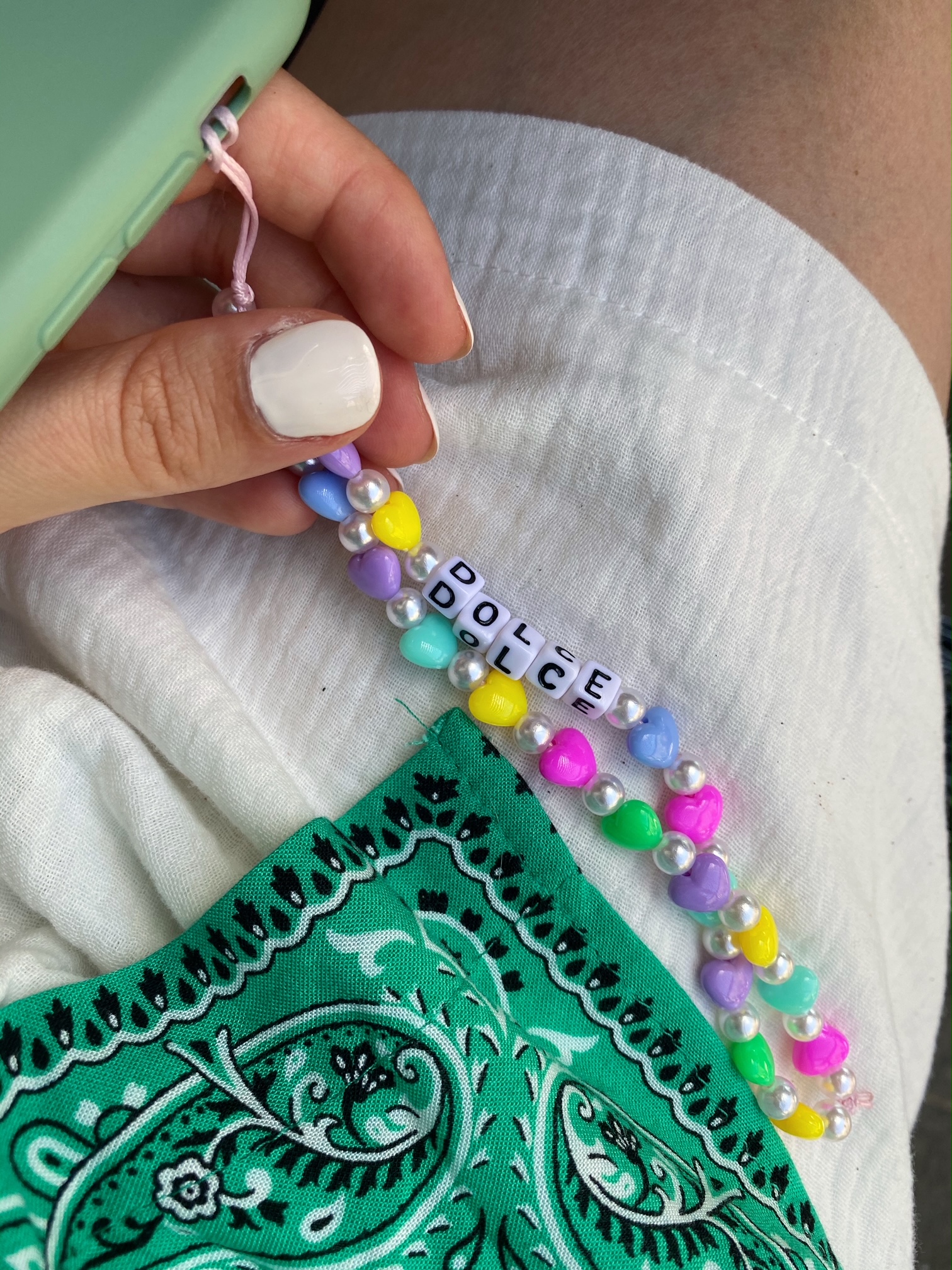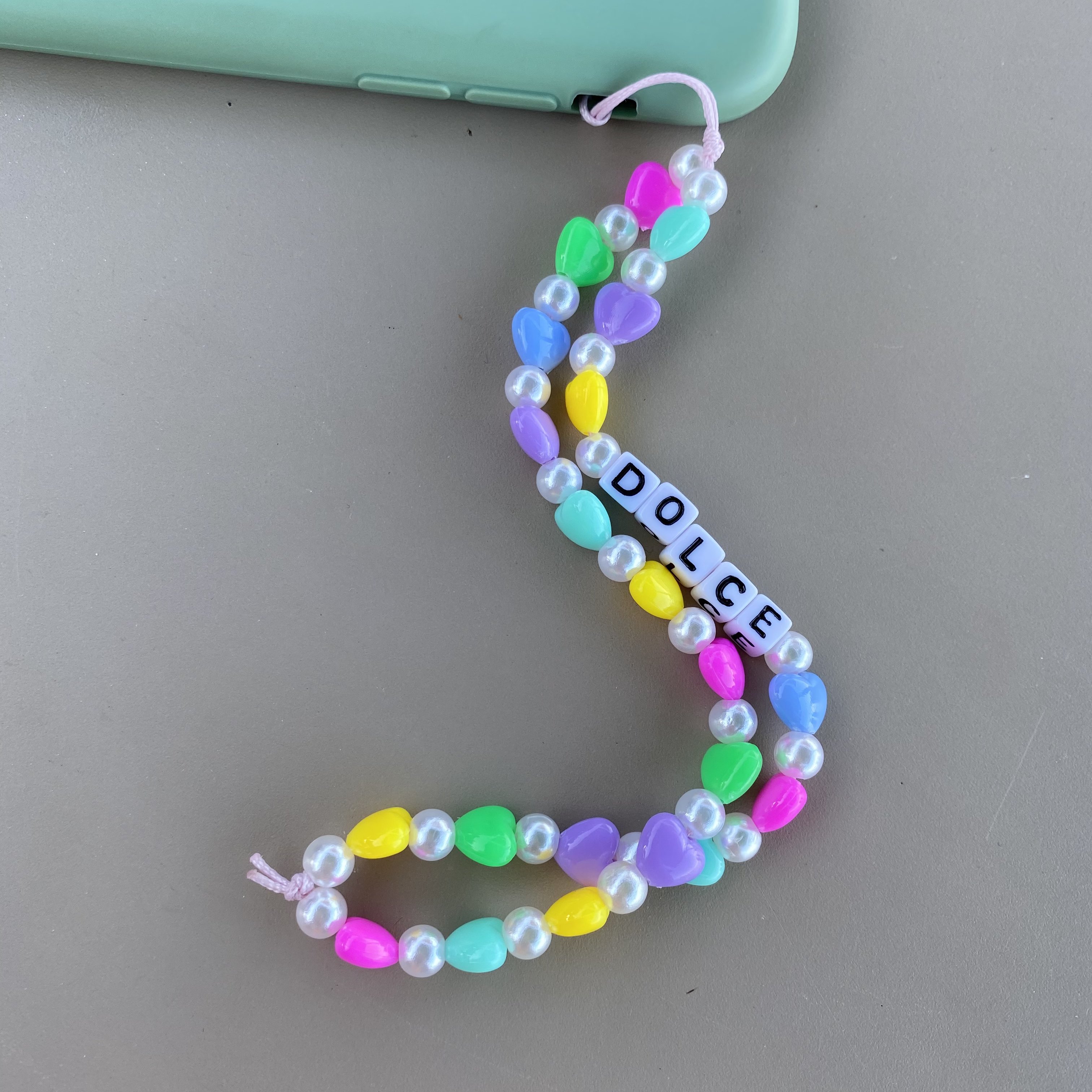 Poznajcie naszą nowość, która urozmaici wasz telefon. Zawieszka wykonana jest z kolorowych koralików w kształcie serduszek oraz, perełek. Sam wybierasz jaki tekst ma się na nim znaleść. Nick z instagrama? Twoje imię? A może coś dla bliskiej osoby? Sam o tym decydujesz.
