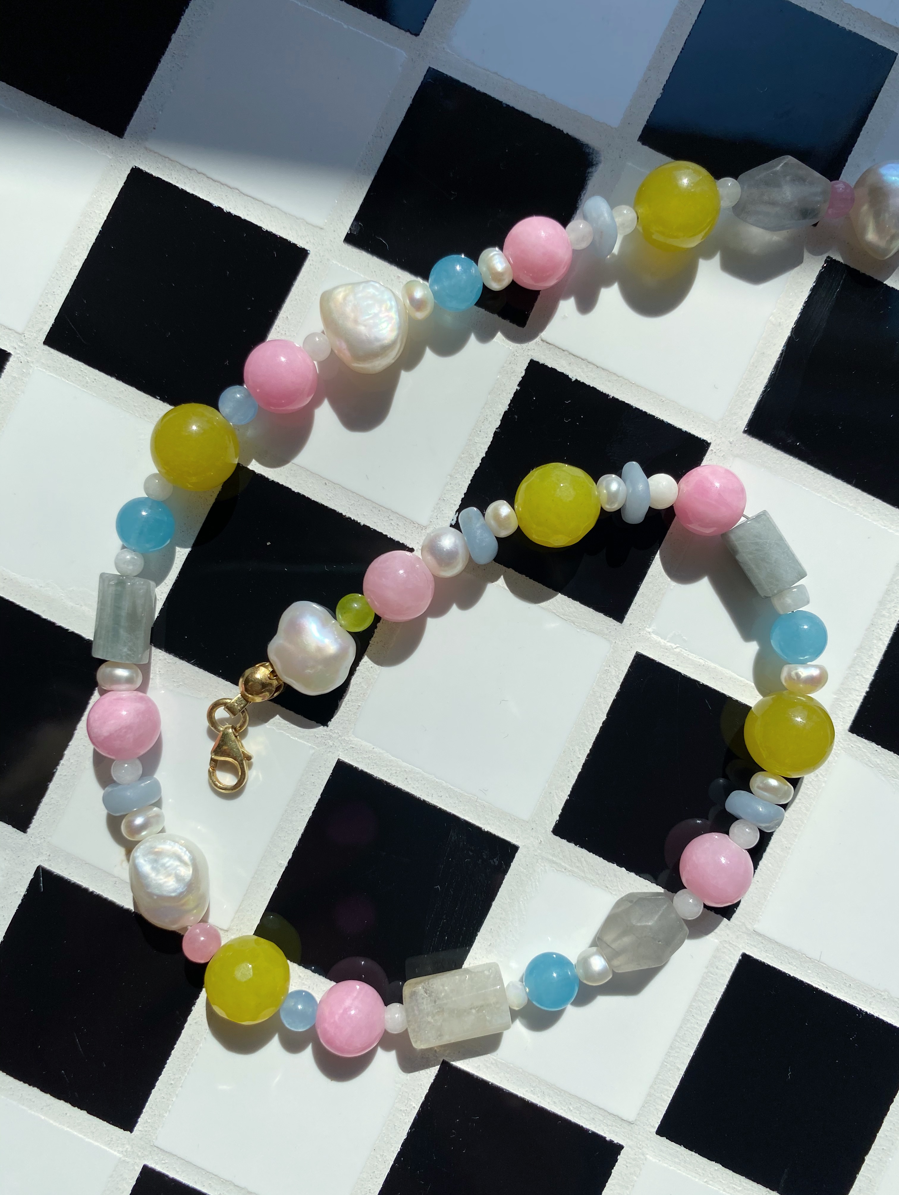 COMO pozłacany naszyjnik z naturalnymi kamieniami i perłami