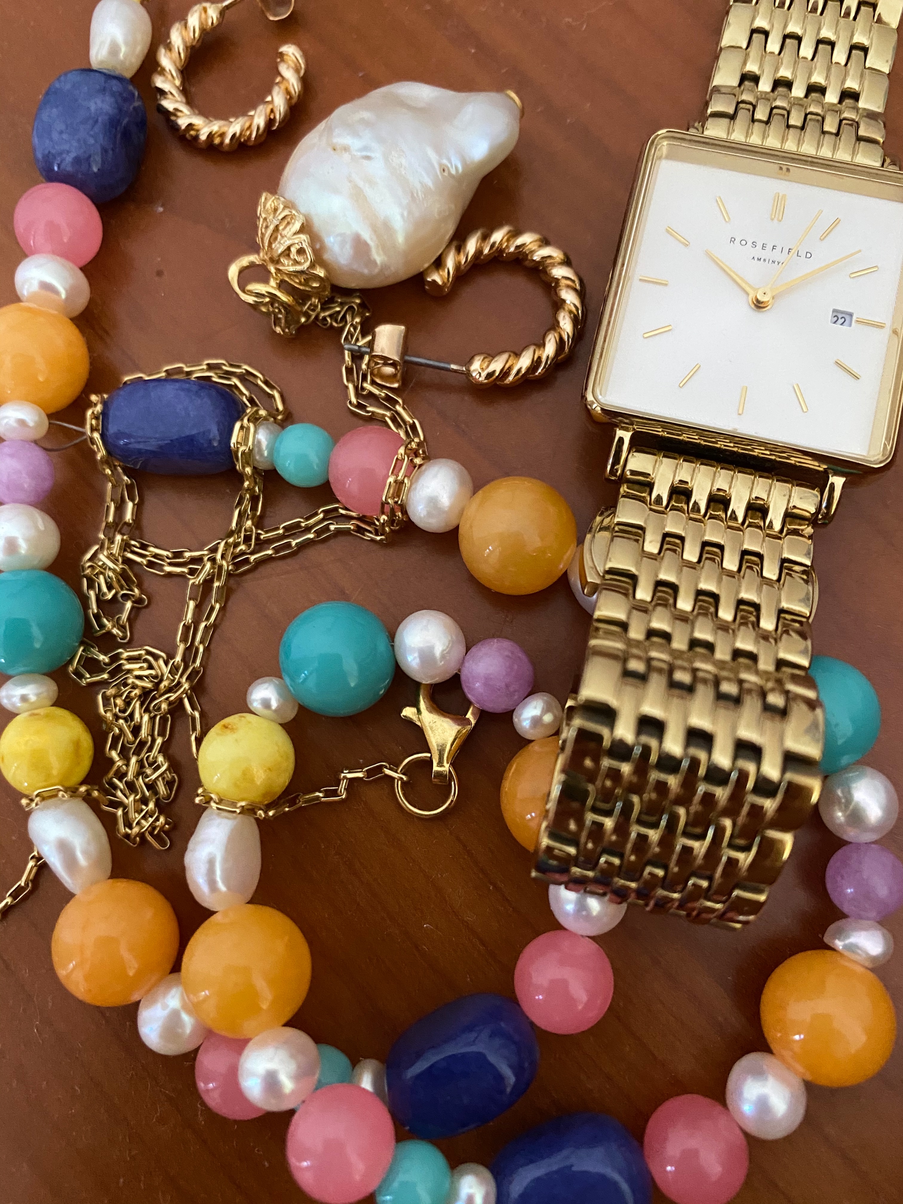 LUCA pozłacany naszyjnik z naturalnymi kamieniami i perłami