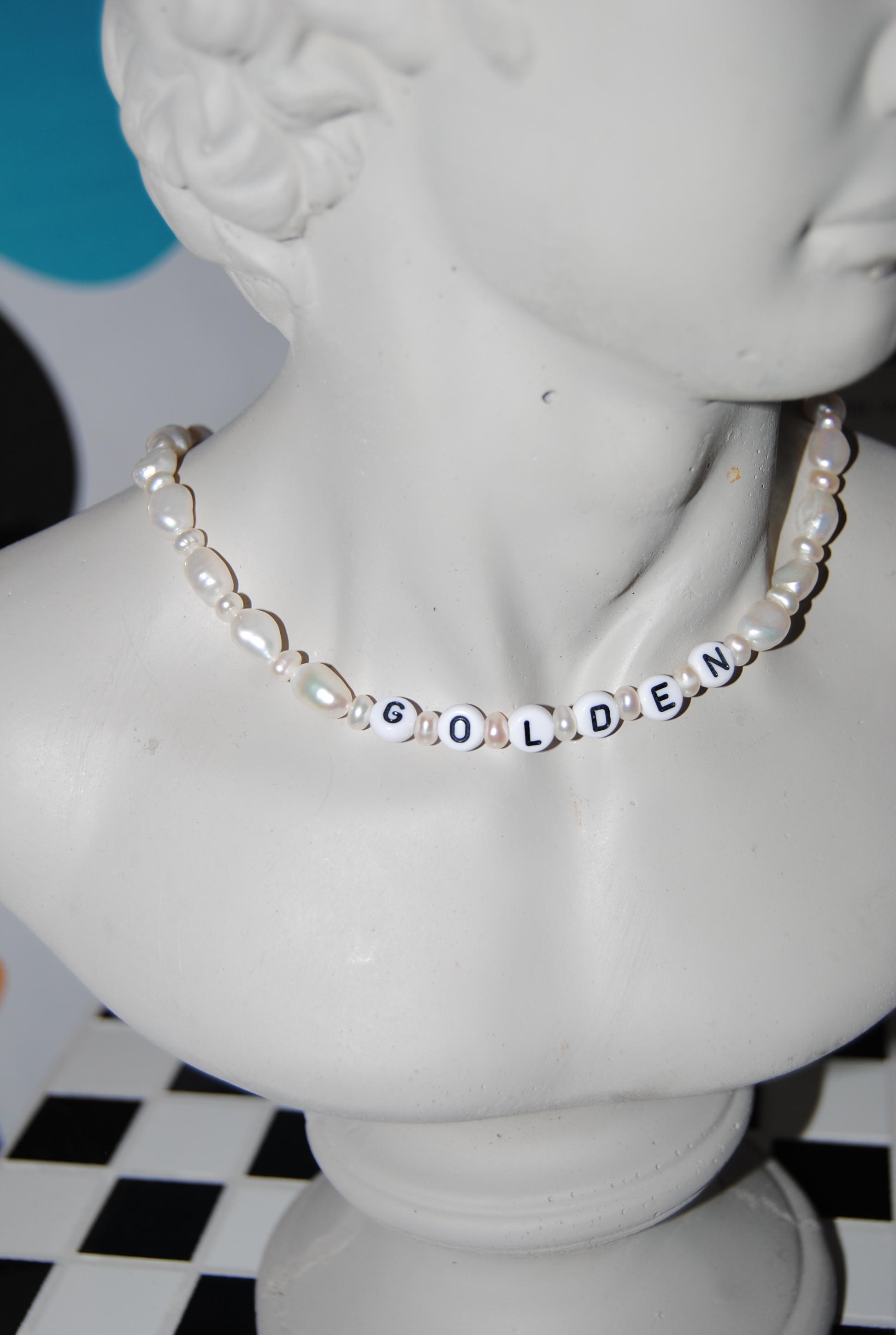 Naszyjnik składa się z naturalnych pereł w dwóch rozmiarach oraz literek. Całość dopełnia pozłacane zapięcie ze srebra próby 925. Sam wybierasz jaki tekst ma się na nim znaleść. Nick z instagrama? Twoje imię? A może coś dla bliskiej osoby? Sam o tym decydujesz.