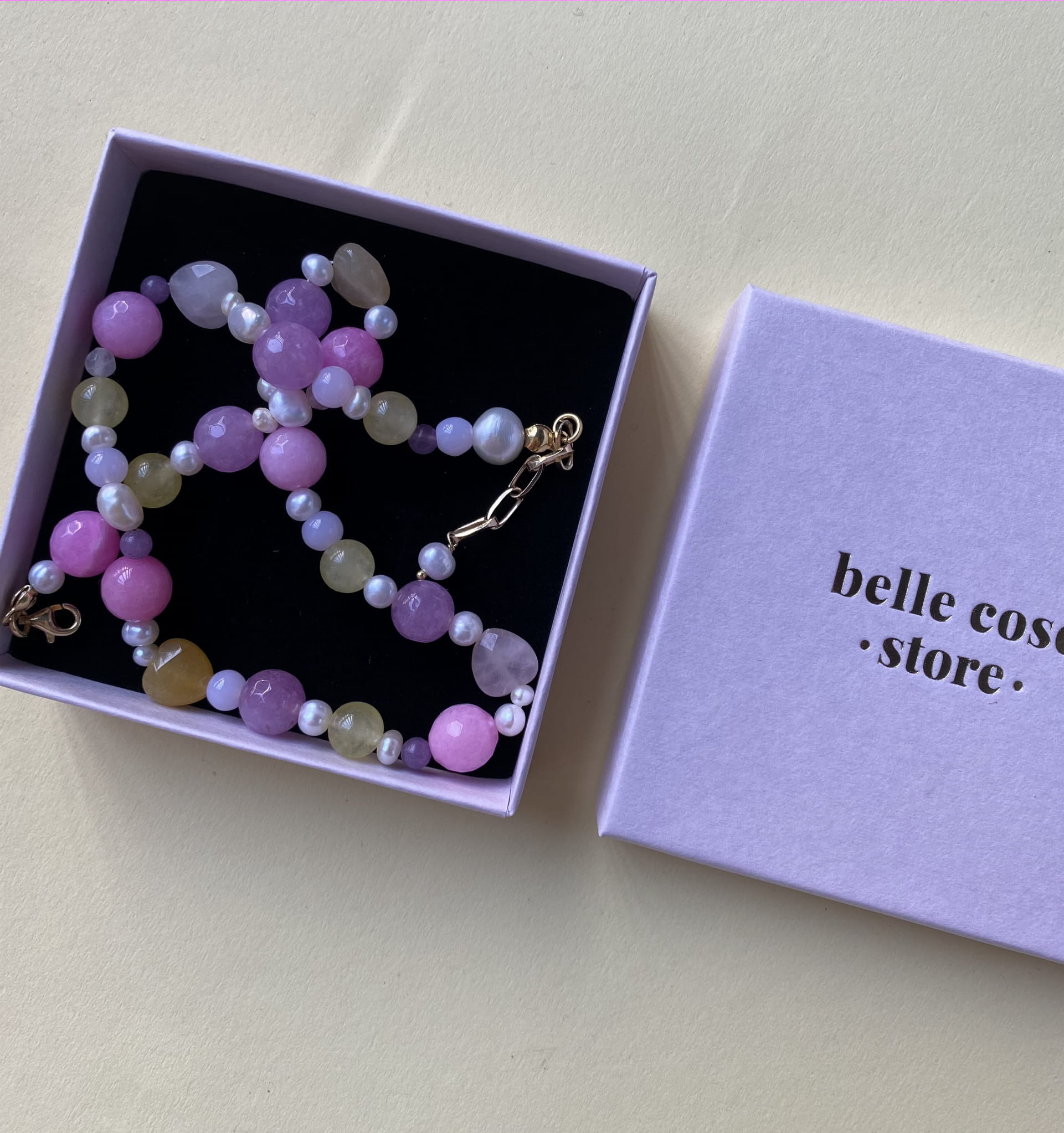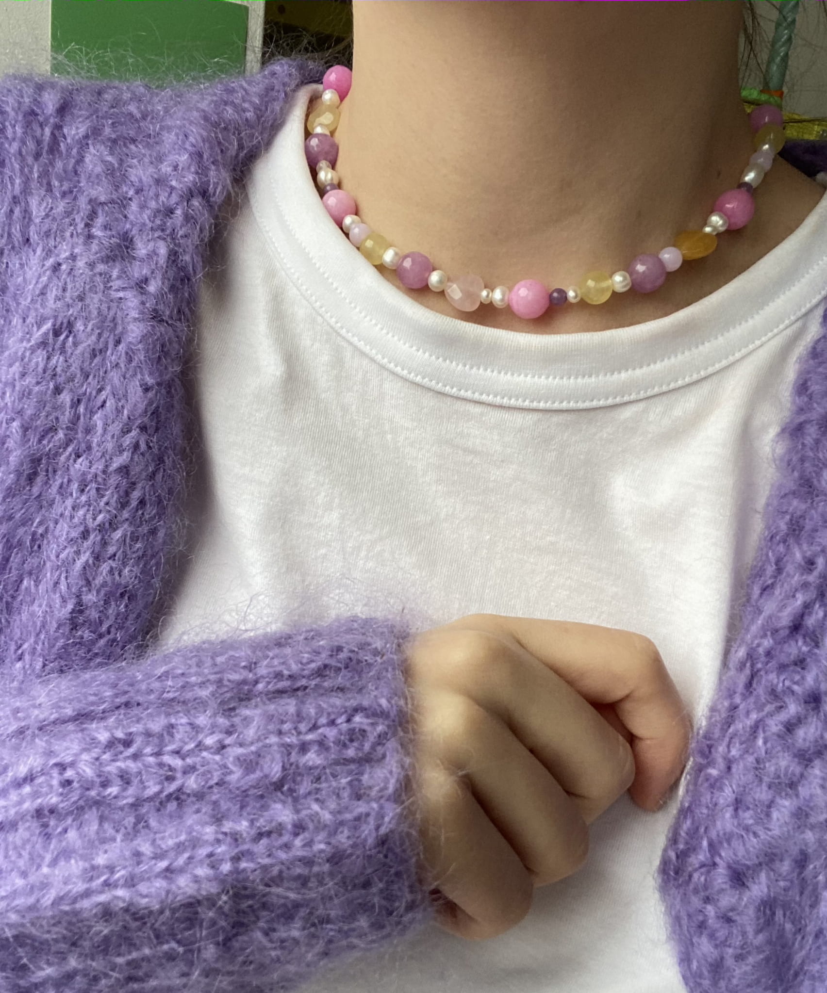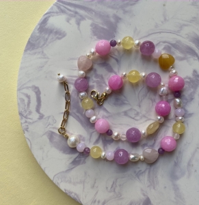 Nasza nowość!! Ten naszyjnik wykonany jest z naturalnych pereł, i kamieni. Wszystko uzupełnione jest elementami wykonanymi ze pozłacanego srebra próby 925. Całość utrzymana jest w pięknej, żółto, fioletowo, różowej kolorystyce. Świetnie komponuje się z naszymi pozostałymi modelami.