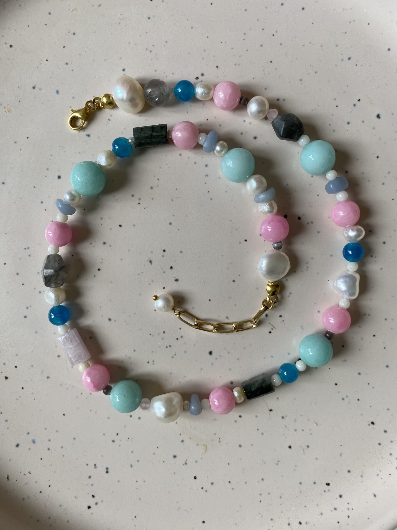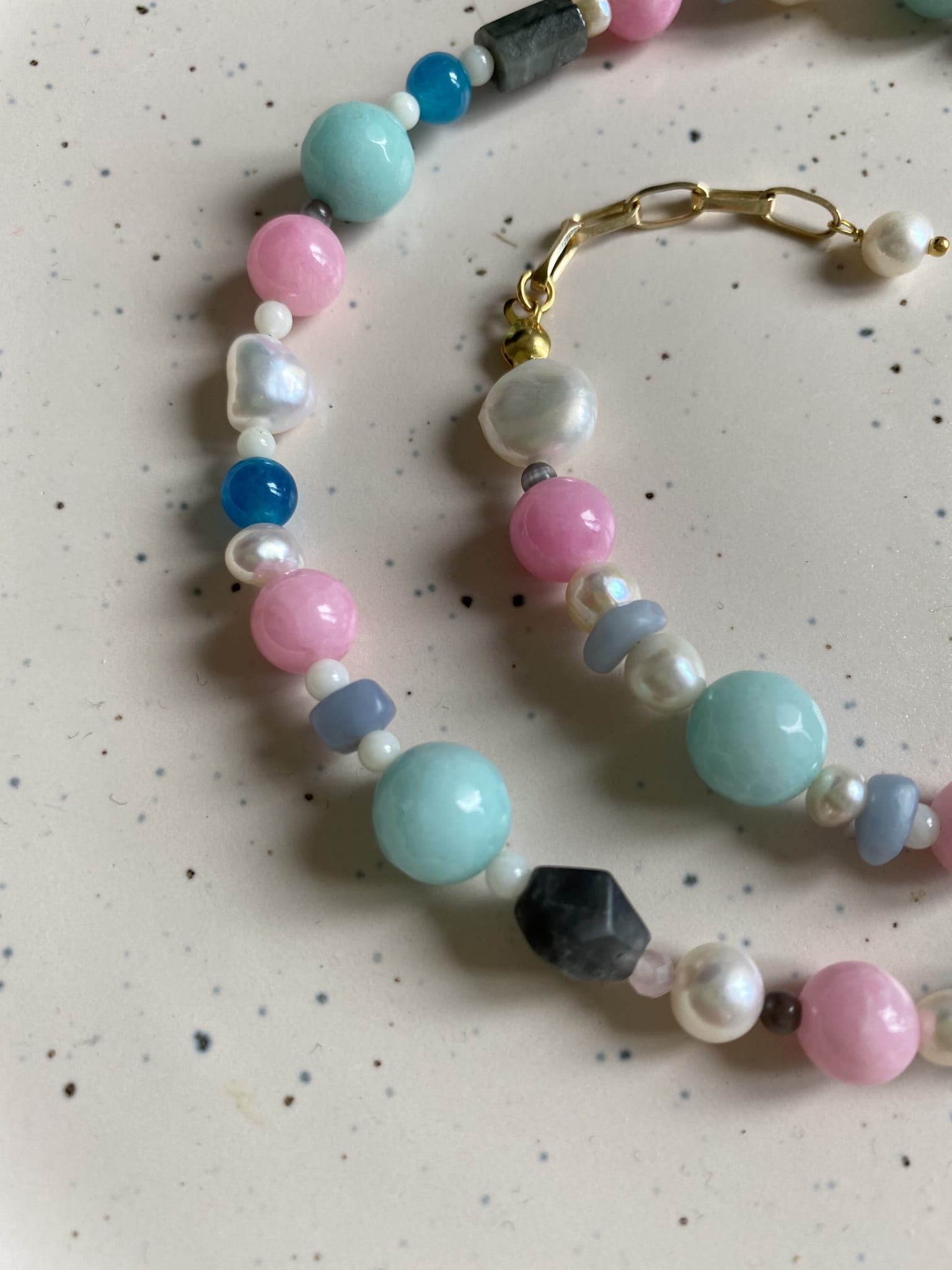 COMO 2 pozłacany naszyjnik z naturalnymi kamieniami i perłami