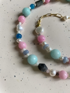Nowa odsłona kolorystyczna naszego bestsellerowego modelu Como. Ten naszyjnik wykonany jest z naturalnych pereł, i kamieni. Wszystko uzupełnione jest elementami wykonanymi ze pozłacanego srebra próby 925. Świetnie komponuje się z naszymi pozostałymi modelami, zwłaszcza tymi na delikatnym łańcuszku.
