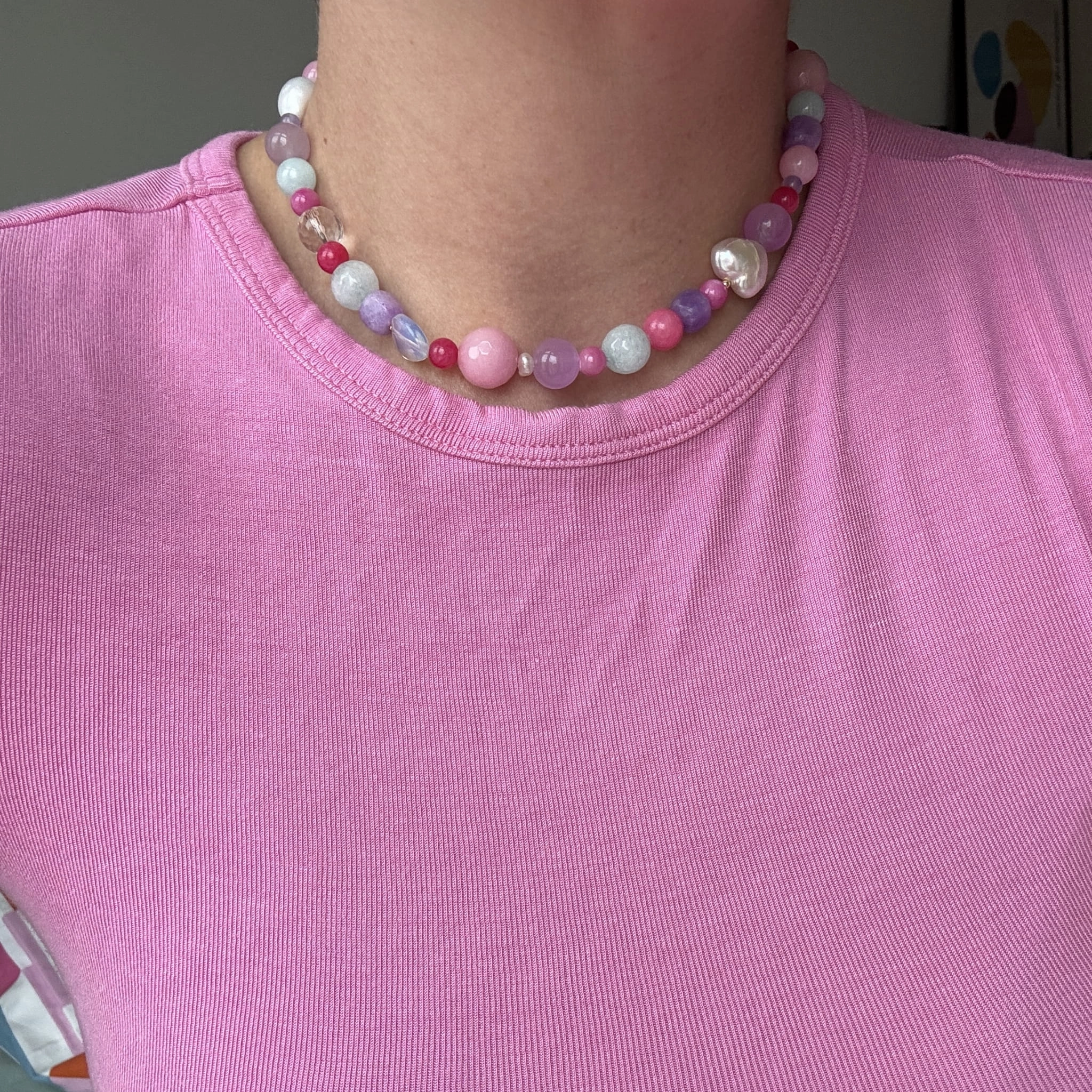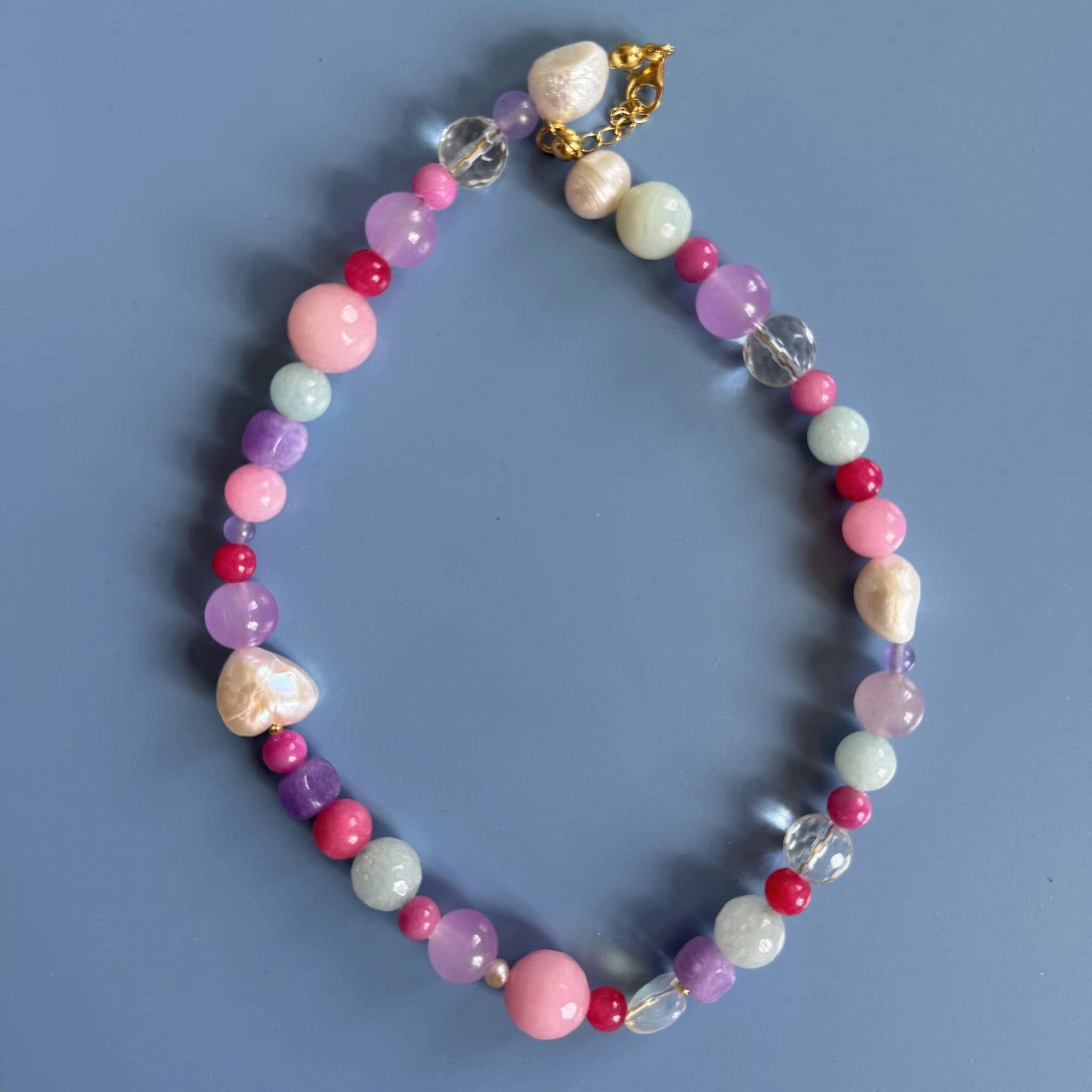 Nasza nowość!! Ten naszyjnik wykonany jest pereł, i kamieni o różnych kształtach wśród, których znajdziemy m.in jadeit, agat oraz perły. Wszystko uzupełnione jest elementami wykonanymi ze pozłacanego srebra próby 925.