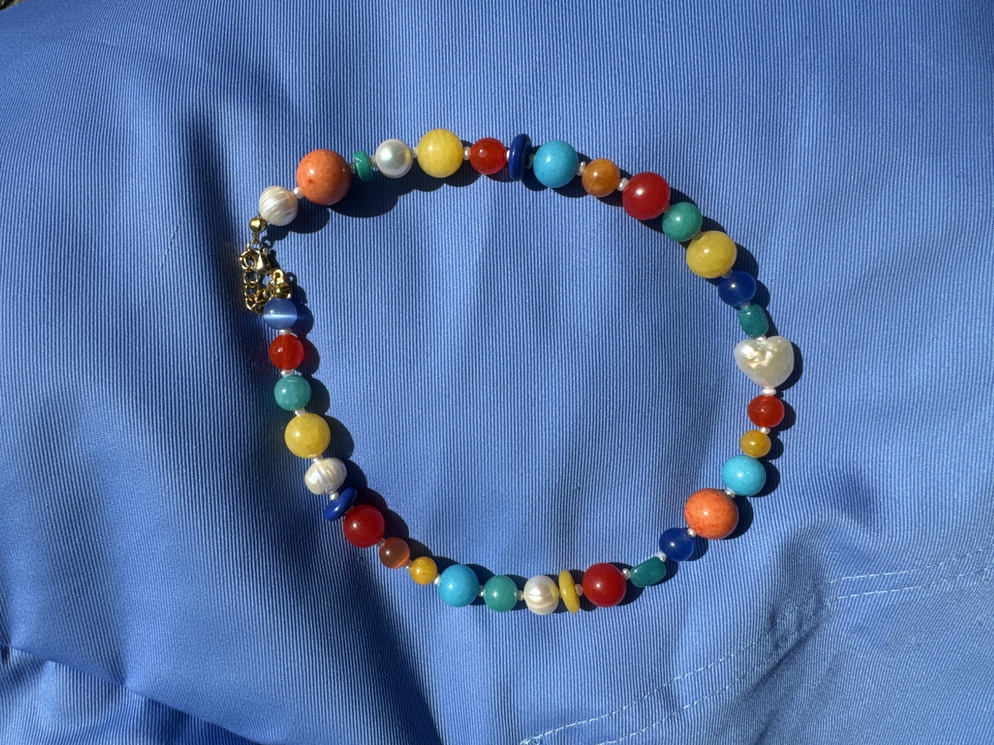 CORALINE pozłacany naszyjnik z kamieni i pereł