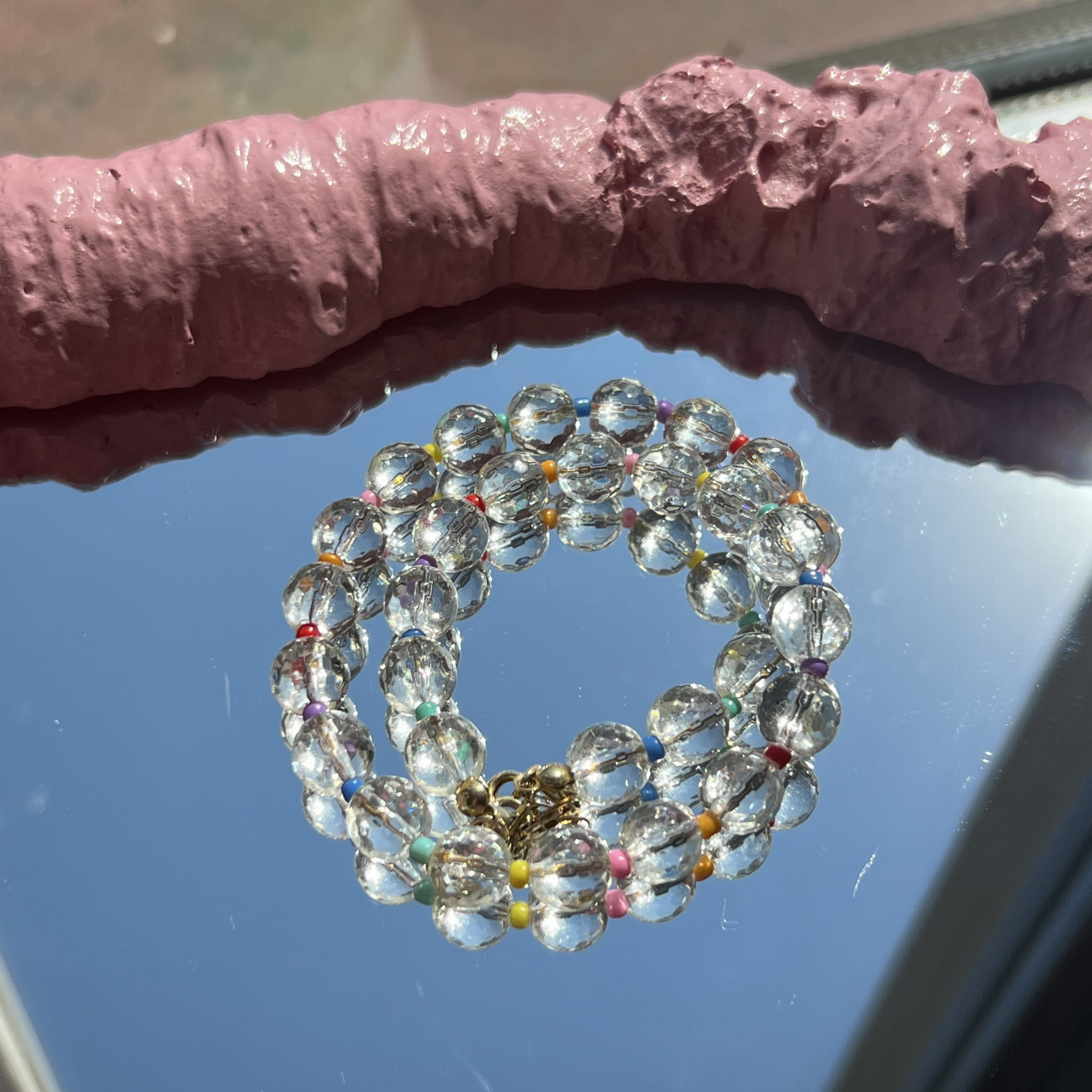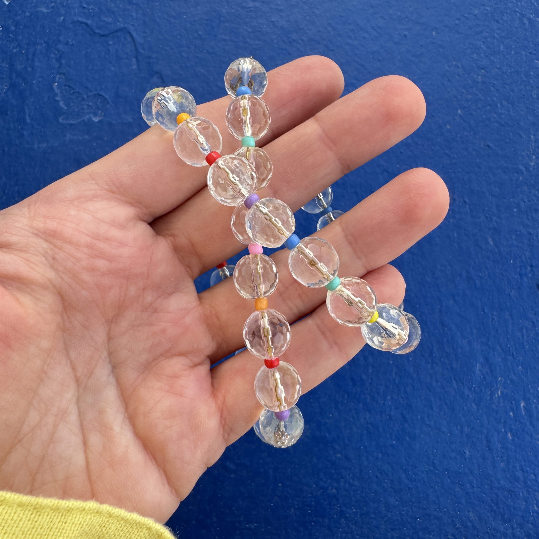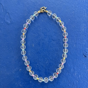 Nasza nowość!! Ten naszyjnik wykonany jest z fasetowanego kryształu górskiego i kolorowych koralików przeplatających kamienie. Wszystko uzupełnione jest elementami wykonanymi ze pozłacanego srebra próby 925. Jest subtelny i delikatny dzięki czemu pasuje do każdej stylizacji.