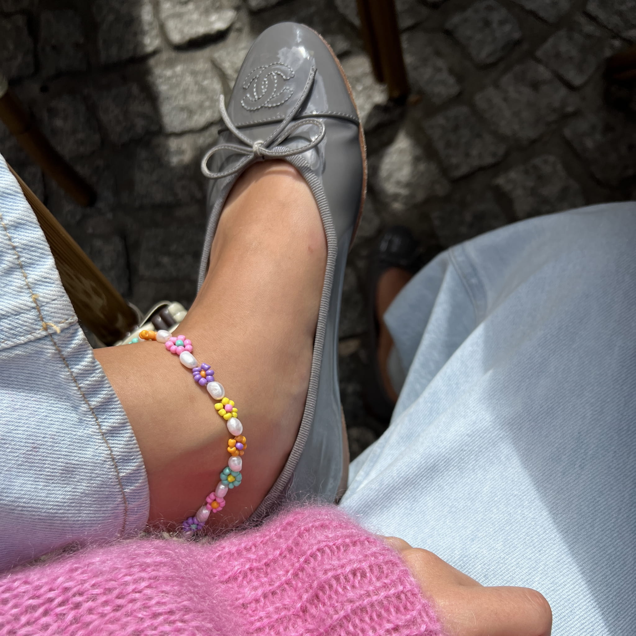 FIORE bransoletka na nogę z motywem kwiatów z koralików