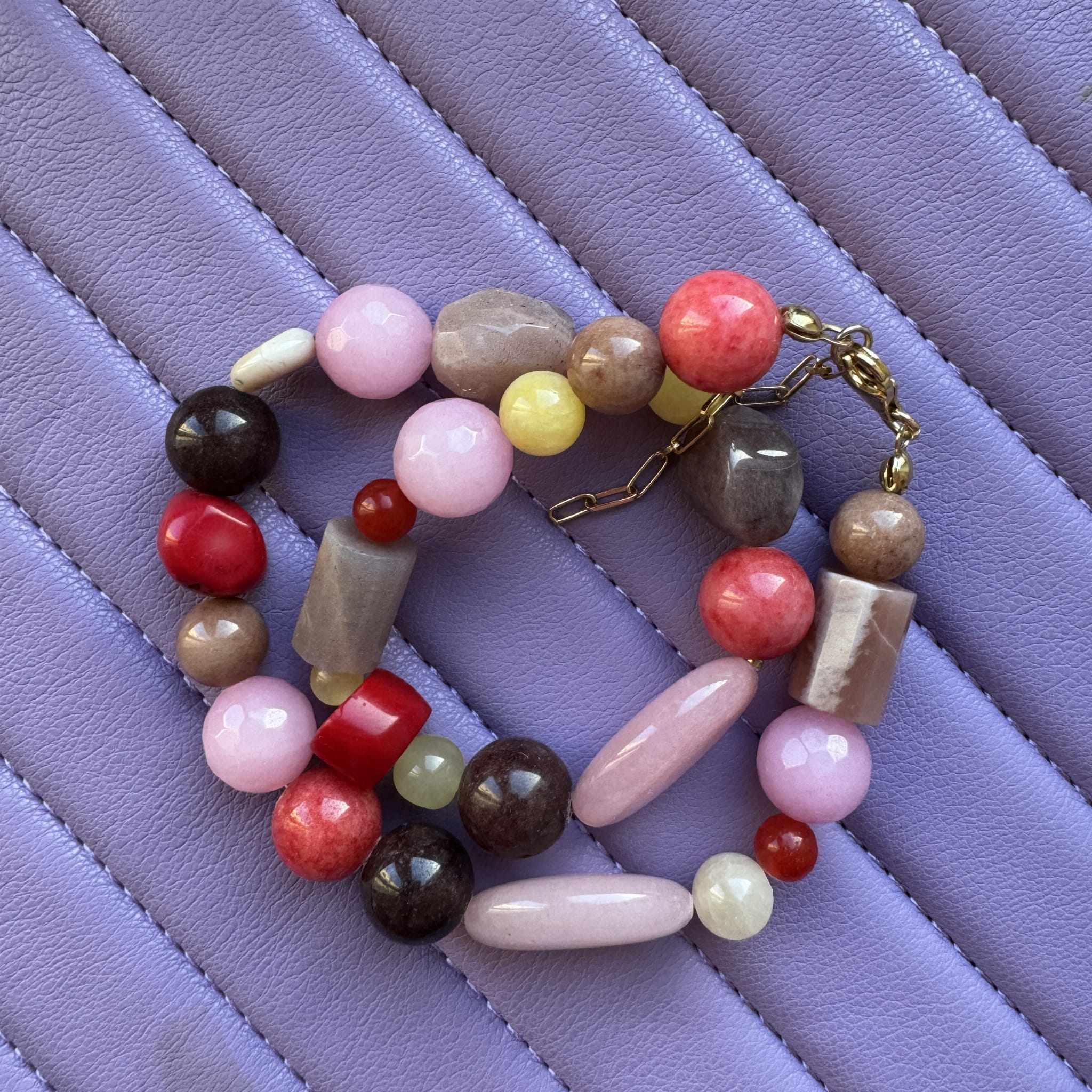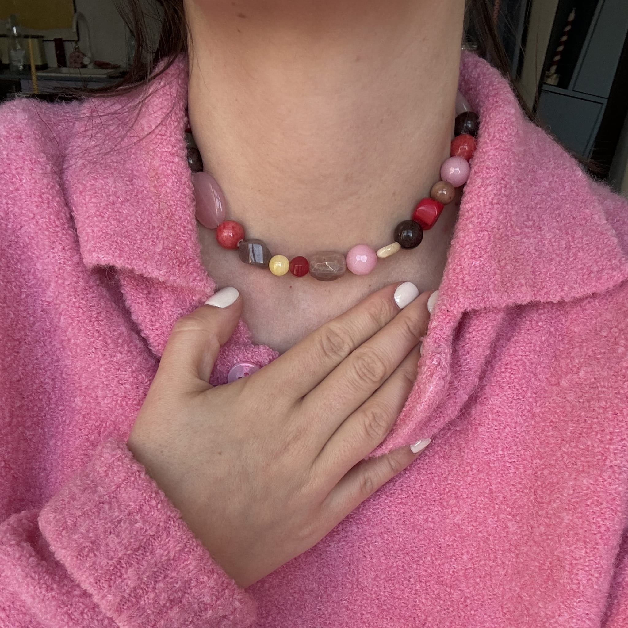 Nasza nowość!! Ten naszyjnik wykonany jest z kamieni o różnych kształtach wśród, których znajdziemy m.in kamień słoneczny, jadeit, agat. Wszystko uzupełnione jest elementami wykonanymi ze pozłacanego srebra próby 925.