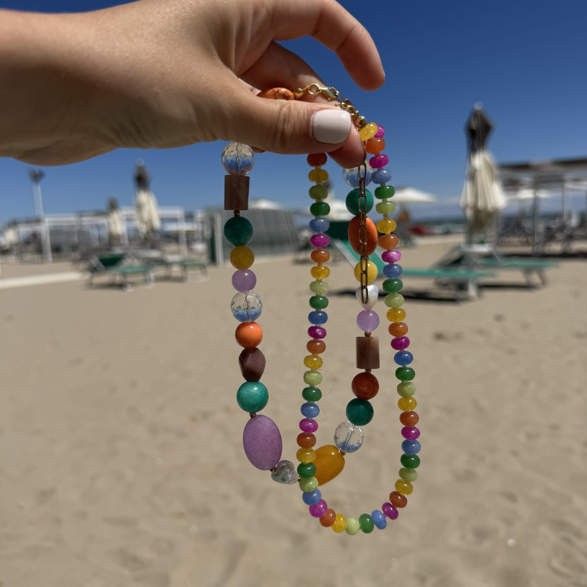 Nasza nowość!! Ten naszyjnik wykonany jest pereł, i kamieni o różnych kształtach wśród, których znajdziemy m.in chalcedon, onyks czy akwamaryn Wszystko uzupełnione jest elementami wykonanymi ze pozłacanego srebra próby 925.