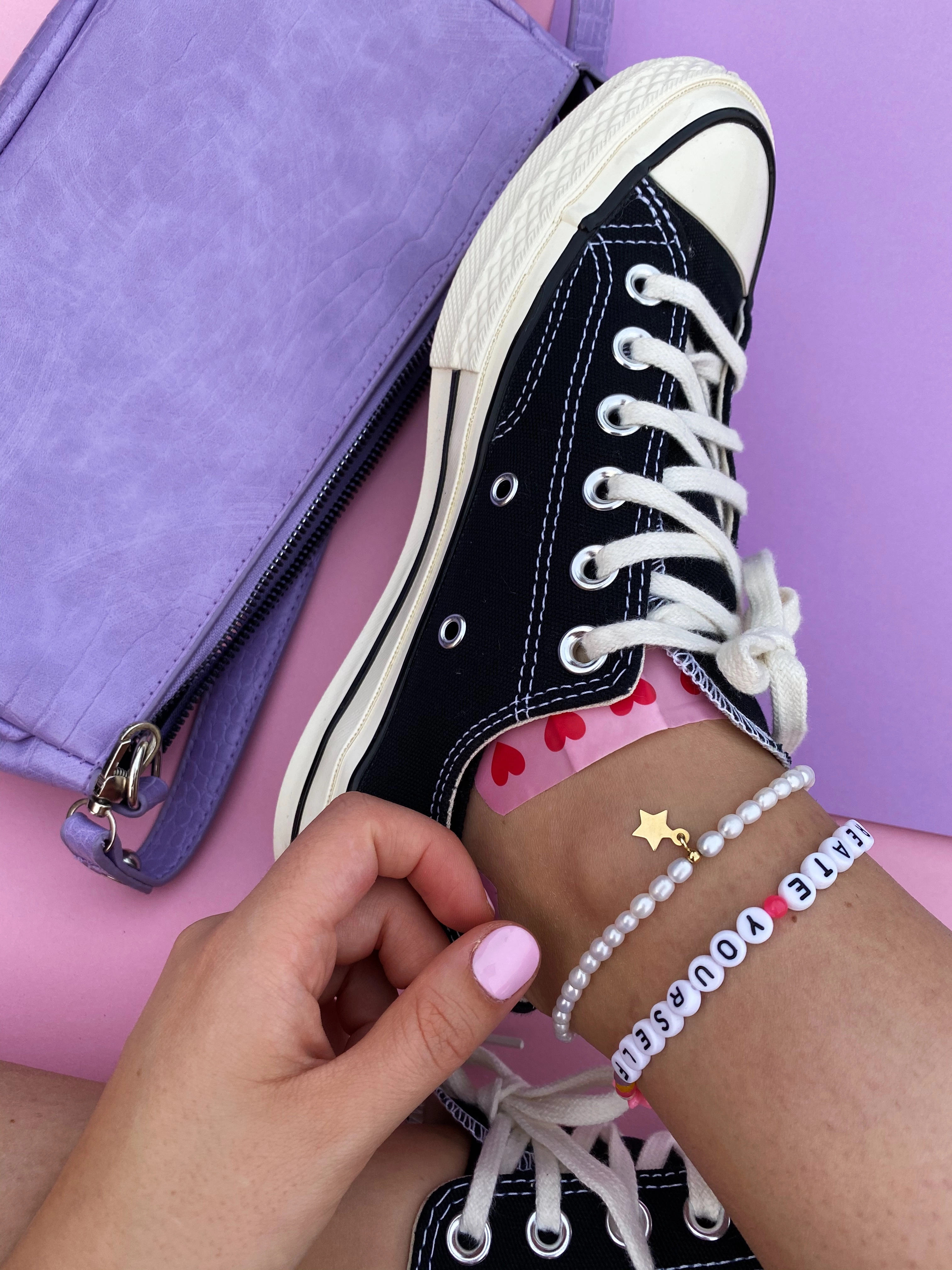 Ta bransoletka dedykowana jest noszeniu na stopie, ale bez problemu możemy dopasować ją do Twojej ręki :) Wykonujemy ją specjalnie dla Ciebie, więc możesz samodzielnie zadecydować o jej długości. Sam wybierasz jaki tekst ma się na niej znaleść. Nick z instagrama? Twoje imię? A może coś dla bliskiej osoby?