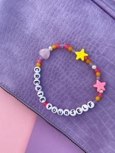Wykonana jest z naturalnych kamieni oraz literek. Wszystko to dopełniają naturalne perły i fantazyjne koraliki,